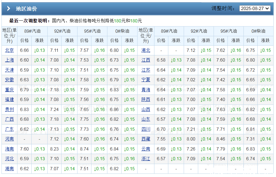 油价上涨“涨破”天了!在国内成品油市场,刚刚,今年第18-19日调价,本月仅有的2次调整,国内汽柴油执行搁浅的局面!按照汽柴油形成规定,当前,国内成品油价格仍执行8月下旬,今年第17次调价后的水平,汽柴油分别下降0.14~0.16元/升!其中,以北京地区为例,当前,92号汽油7.11元/升,95号汽油7.57元/升,0号柴油在6.8元/升……
